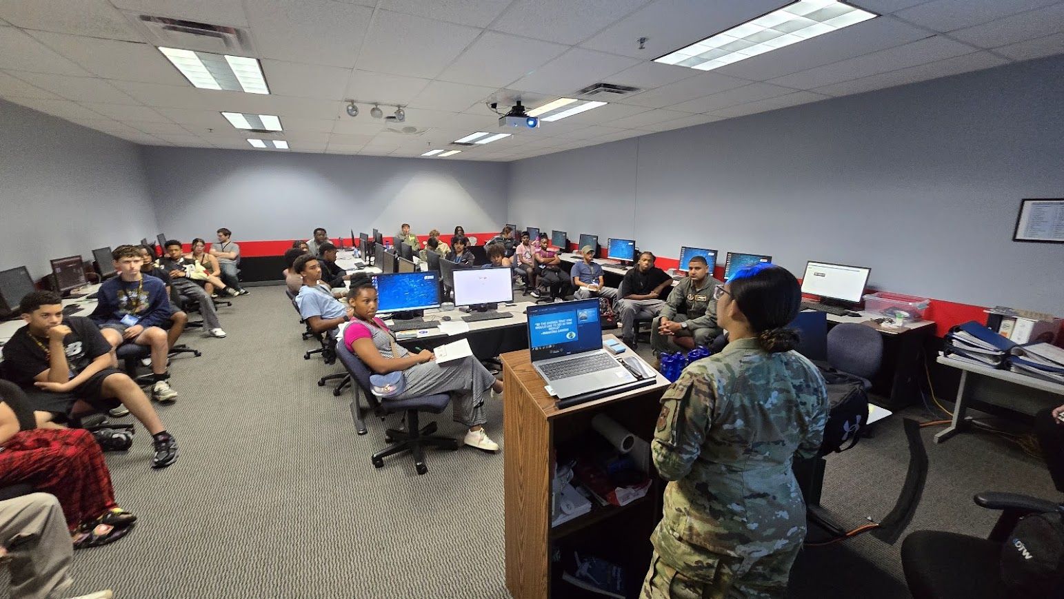 Students are immersed in the world of military aviation and national defense, engaging directly with service members who share their experiences and showcase aircraft, flight equipment, and operations. It is a powerful reminder of the discipline, teamwork, and dedication required to serve and fly at the highest level.